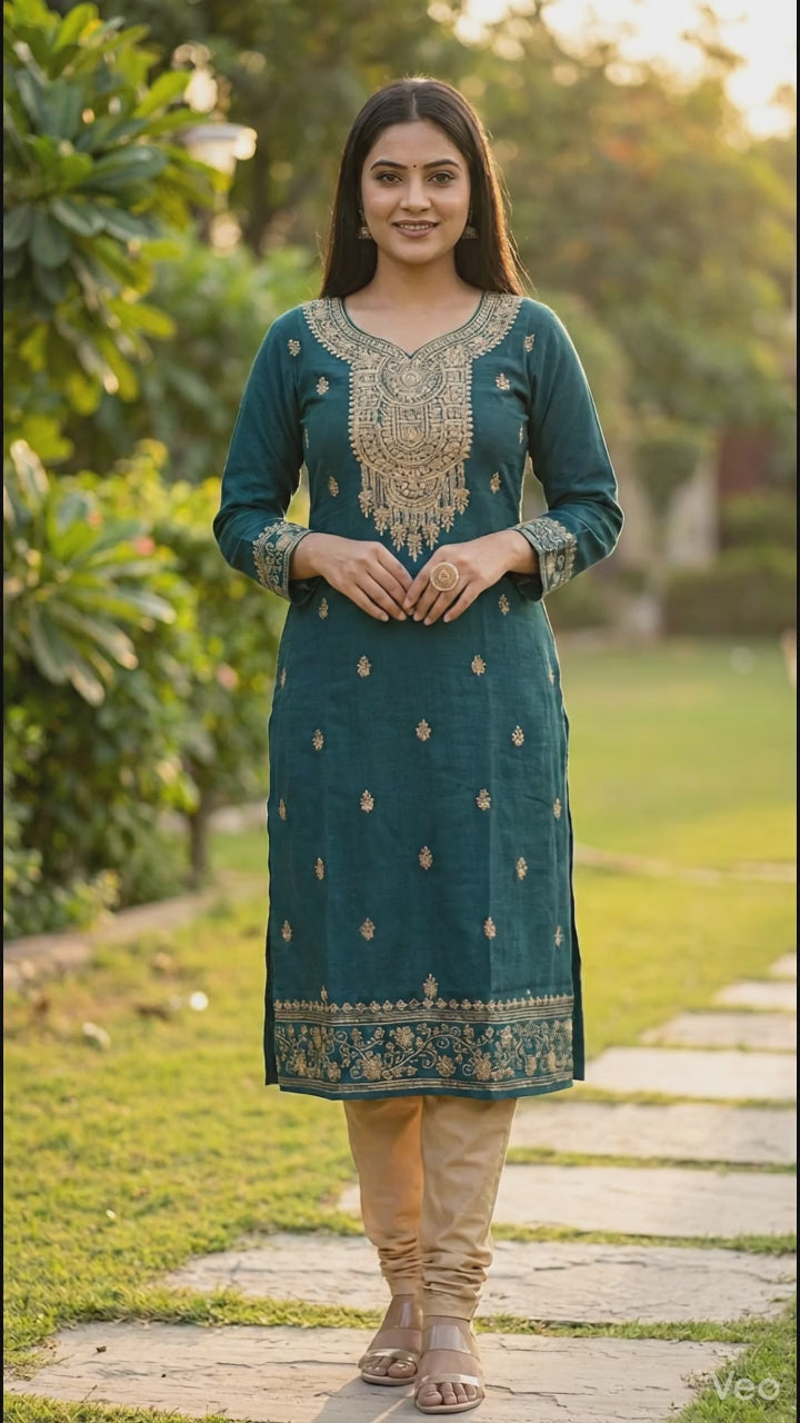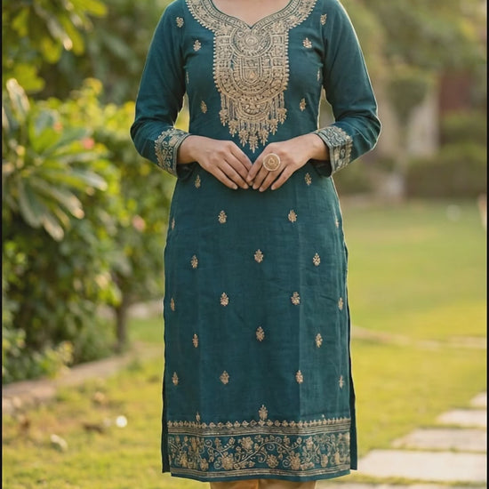 A deep teal blue pure OR Petrol Blue cotton kurti.